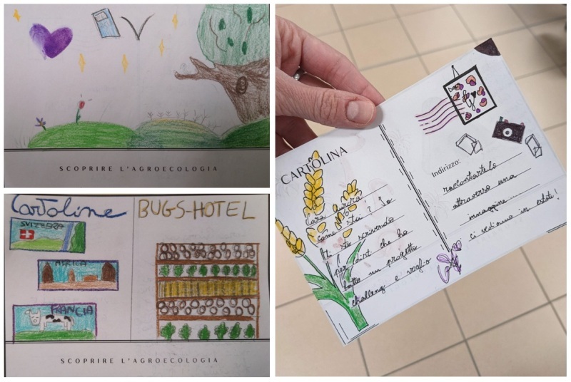 Cartoline realizzate dagli allievi e allieve delle classi che hanno partecipato ai laboratori sull'agroecologia
